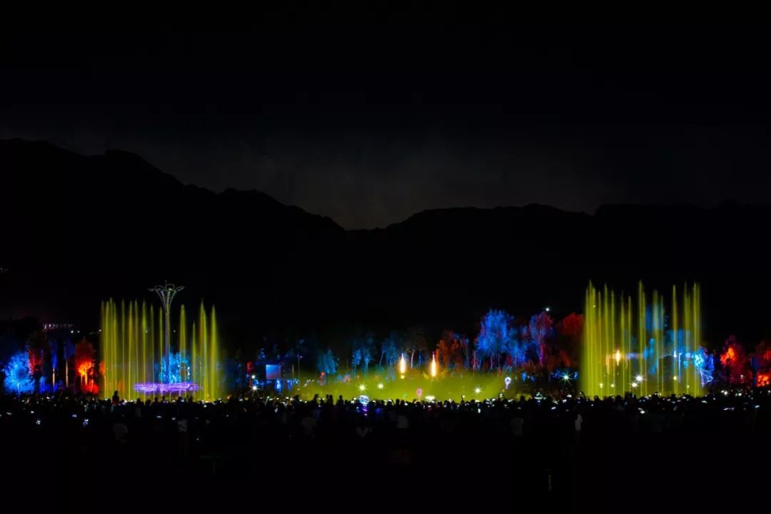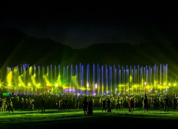 寧夏石嘴山北武當(dāng)音樂噴泉—北武當(dāng)河生態(tài)公園的燈光音樂噴泉,整體平面布局以2條弧線與4個圓形相切,鑲嵌在由水膜組成的巨形方陣中,噴泉以經(jīng)典的音樂、水舞、火舞、激光、藝術(shù)燈光編排,賦予表演豐富的人文內(nèi)涵,是北武當(dāng)河生態(tài)公園的點睛之筆。