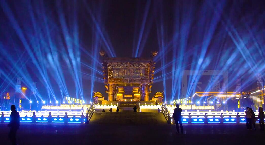 中華郡下,炫彩燈光,沖向天際,宣示千年風(fēng)光,精彩奪目,成為富平夜晚的新地標(biāo)。