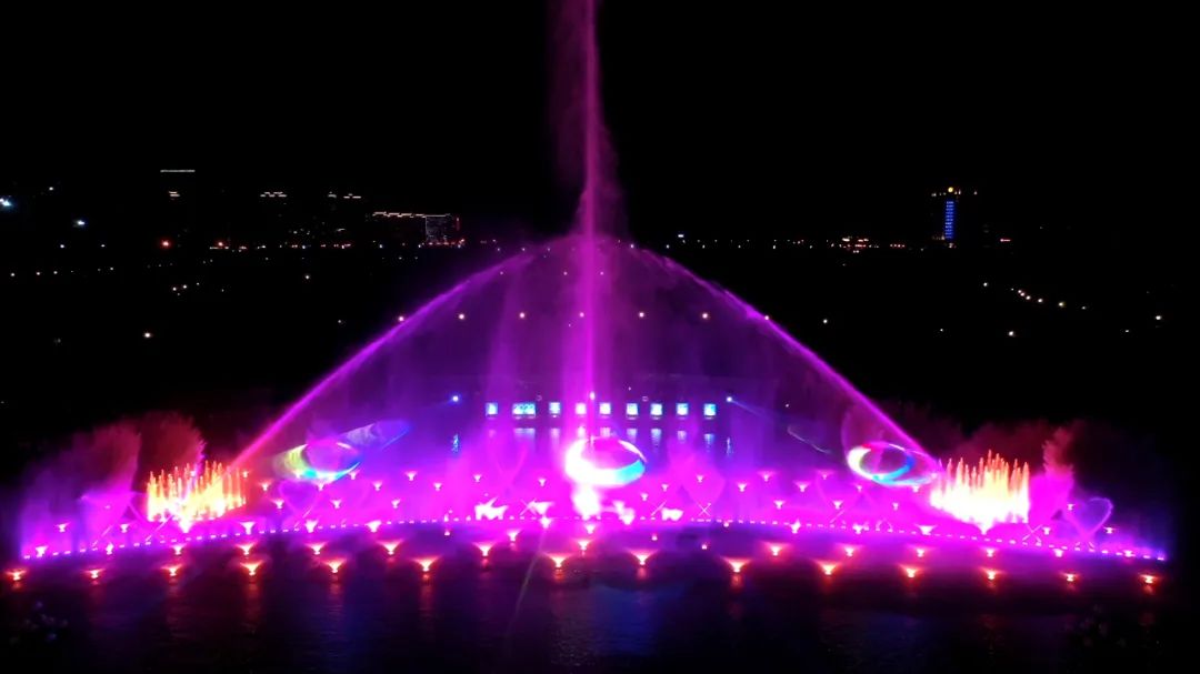 平度2020公園“織夢(mèng)膠東 平度盛典”光影水舞秀演出徐徐而來,為四方來客留下難忘的視聽印象。