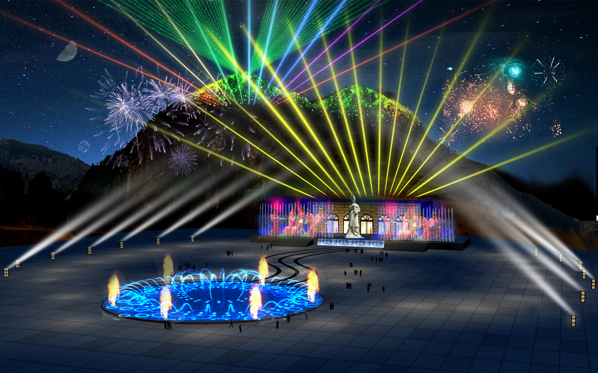 投影系統(tǒng):高流明激光投影儀(如20,000流明以上)投射動態(tài)畫面至山崖。